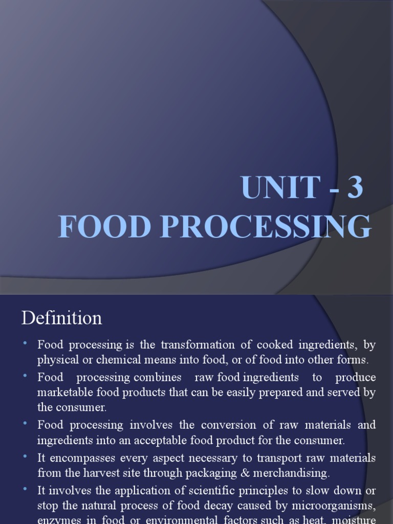PPT Food Processing PowerPoint Presentation, free download ID1873695 Why Food Processing Is Necessary Food processing, any of a variety of operations by which raw foodstuffs are made suitable for consumption, cooking, or storage. It is often related to potential negative. Science and scientists hold the key to solving our planet's food crisis. Food processing offers important benefits to businesses and consumers, including a more varied food supply and foods with a longer shelf.. Why Food Processing Is Necessary.